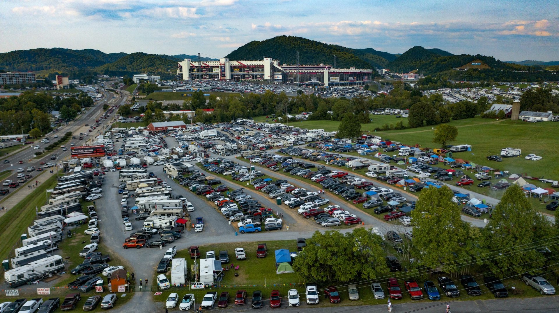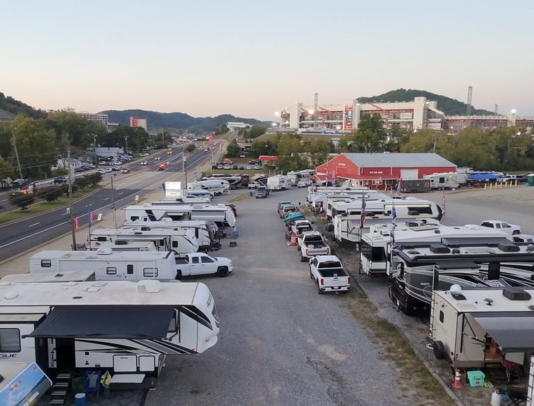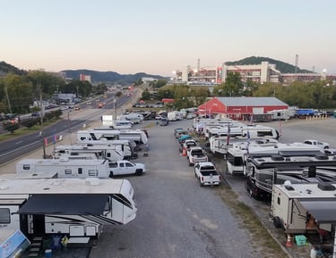 Located on the South side of the Bristol Motor Speedway, you are steps away from all the excitement! Our campground offers the perfect balance of convenience and comfort with a fully fenced, well -lit property and 24-hour surveillance to ensure security. Each reserved spot is designed to accommodate both your RV and one vehicle. To further enhance your stay, we offer a range of amenities, including picnic table rentals, porta-johns, propane, ice, firewood, and fire barrels. For those without an RV, we also offer camper rentals to ensure you’re fully equipped. Our inviting community space provides the perfect setting for guests to connect and relax. Whether you’re here to unwind or explore, our scenic location puts you just moments away from local attractions, making it ideal for both adventure and tranquility. If you’re planning a lively family getaway or a peaceful retreat, our campground is the perfect place to create lasting memories under the open sky. Ask about our extended stay options today.