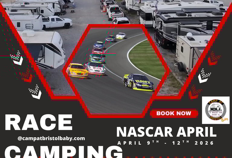 Located on the South side of the Bristol Motor Speedway, you are steps away from all the excitement! Our campground offers the perfect balance of convenience and comfort with a fully fenced, well -lit property and 24-hour surveillance to ensure security. Each reserved spot is designed to accommodate both your RV and one vehicle. To further enhance your stay, we offer a range of amenities, including picnic table rentals, porta-johns, propane, ice, firewood, and fire barrels. For those without an RV, we also offer camper rentals to ensure you’re fully equipped. At Camp at Bristol Baby, our mission is to elevate the spirit of RV travel by creating a vibrant, welcoming community where adventure meets purpose. We stand committed to impacting RV culture locally and across the country—celebrating freedom, connection, and the open road. With a strong foundation in hospitality, community engagement, and shared experiences, we strive to make every traveler feel at home while supporting and uplifting the people and places around us. If you’re planning a lively family getaway or a peaceful retreat, our campground is the perfect place to create lasting memories under the open sky.